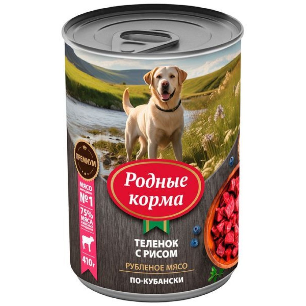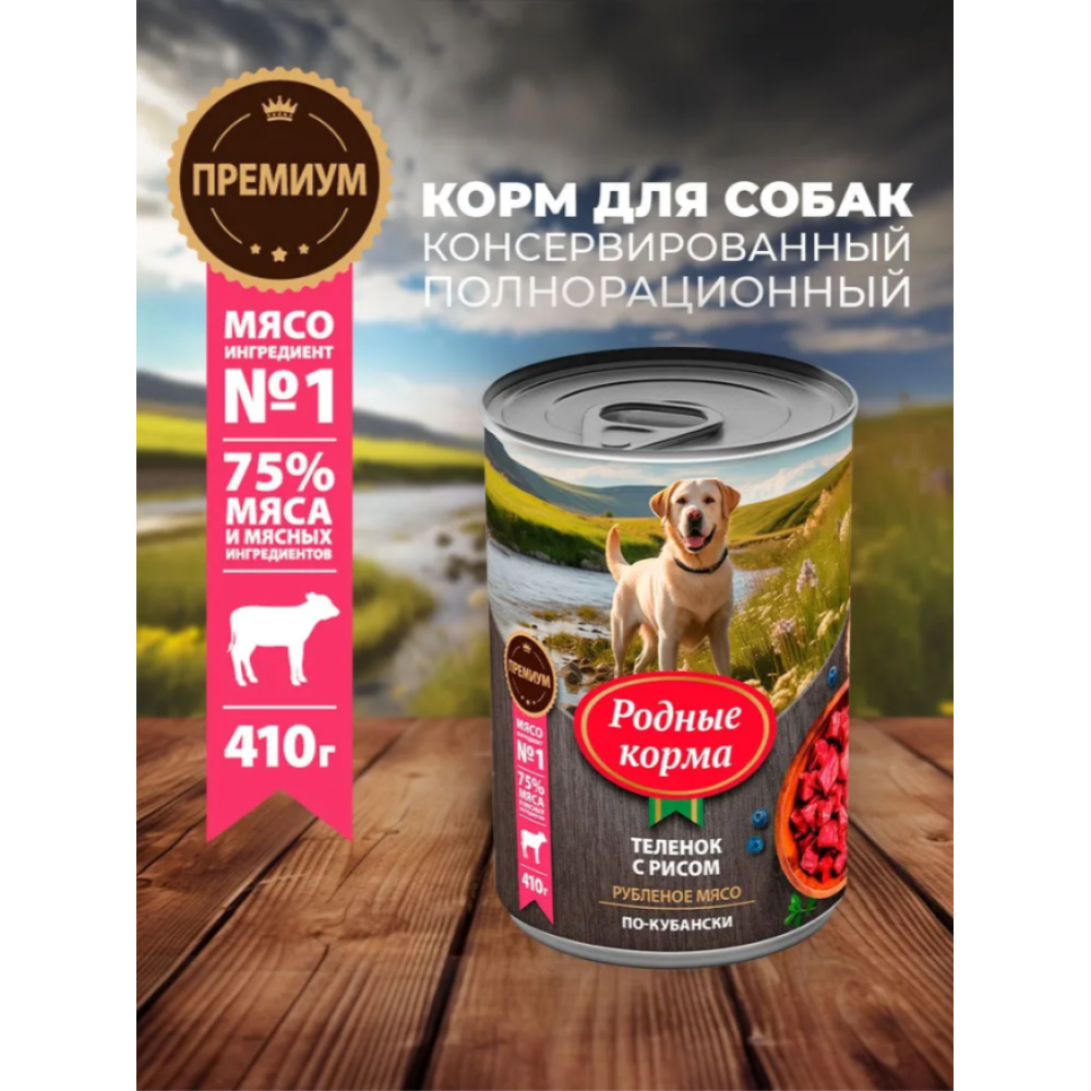 Полнорационный консервированный корм для собак от бренда Родные корма – это 75% мяса и мясных ингредиентов в составе!!