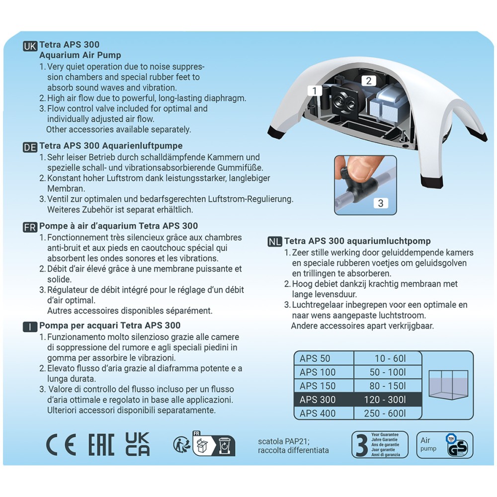 TetraTec AРS 300 – современный надежный компрессор для аквариумов, объемом 120-300 литров.