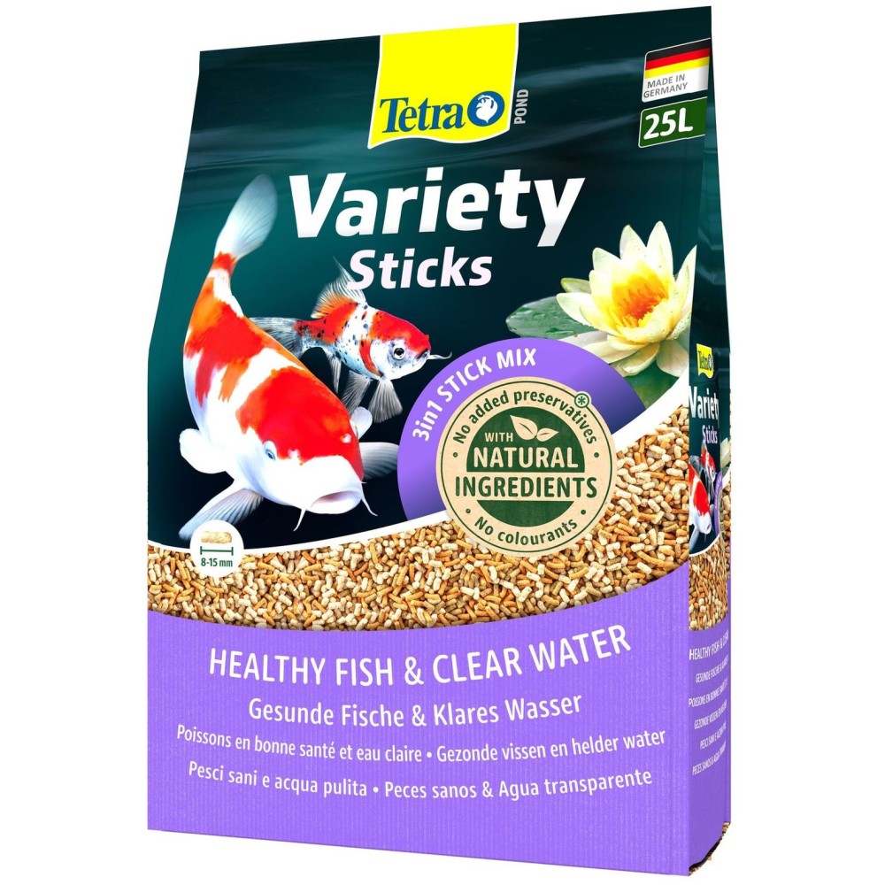 Tetra Pond Variety Sticks – Смесь из трех различных видов палочек обеспечит полноценное и разнообразное кормление для всех прудовых рыб.