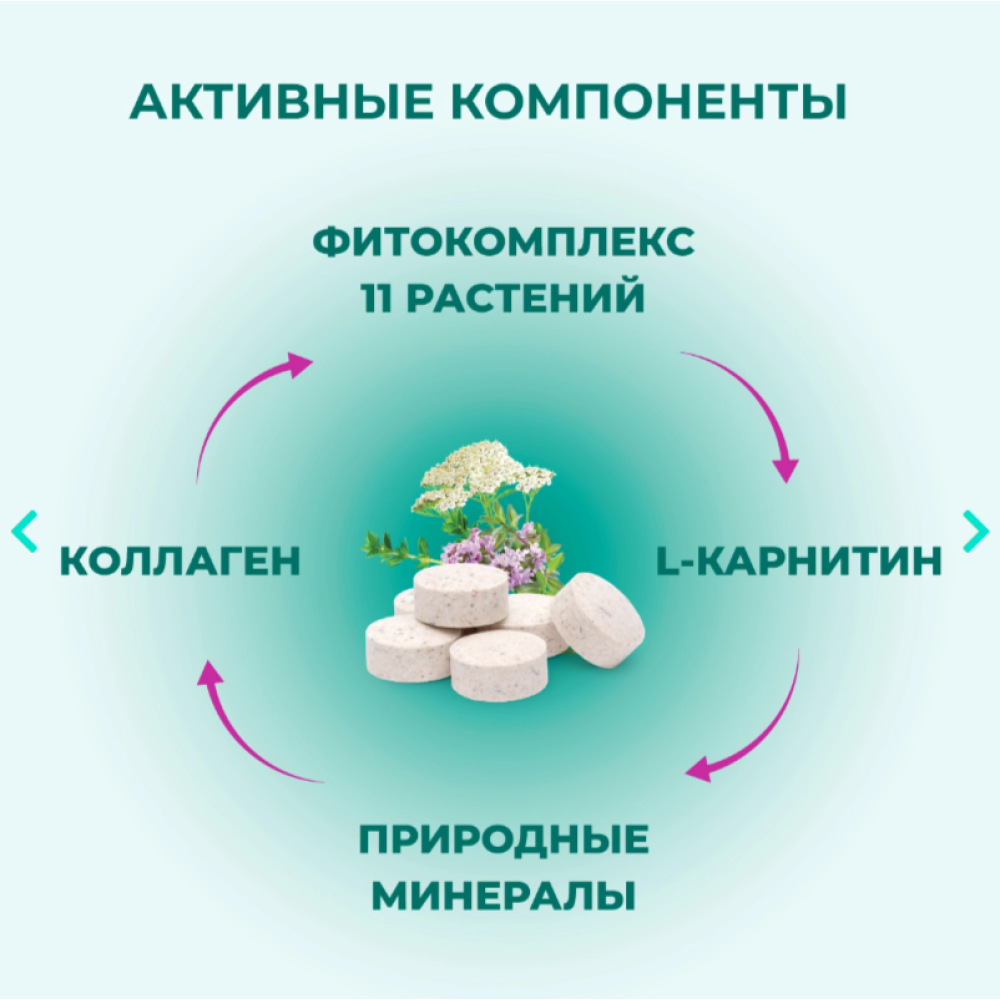 Лактоза; гидролизат белковый; фитокомплекс: лопуха корней, крапивы двудомной листьев, березы листьев, ромашки аптечной цветков, чабреца травы, аира обыкновенного корневищ, череды трехраздельной травы, солодки корней, подмаренника настоящего травы, подорожника большого листьев, тысячелистника обыкновенного травы; дрожжи пивные сухие кормовые; комплекс минеральный (кальция фосфат дефторированный); мука рыбная; крахмал картофельный; кальция стеарат; поливинилпирролидон; L-карнитин; коллагена гидролизат; таурин; сера кормовая.