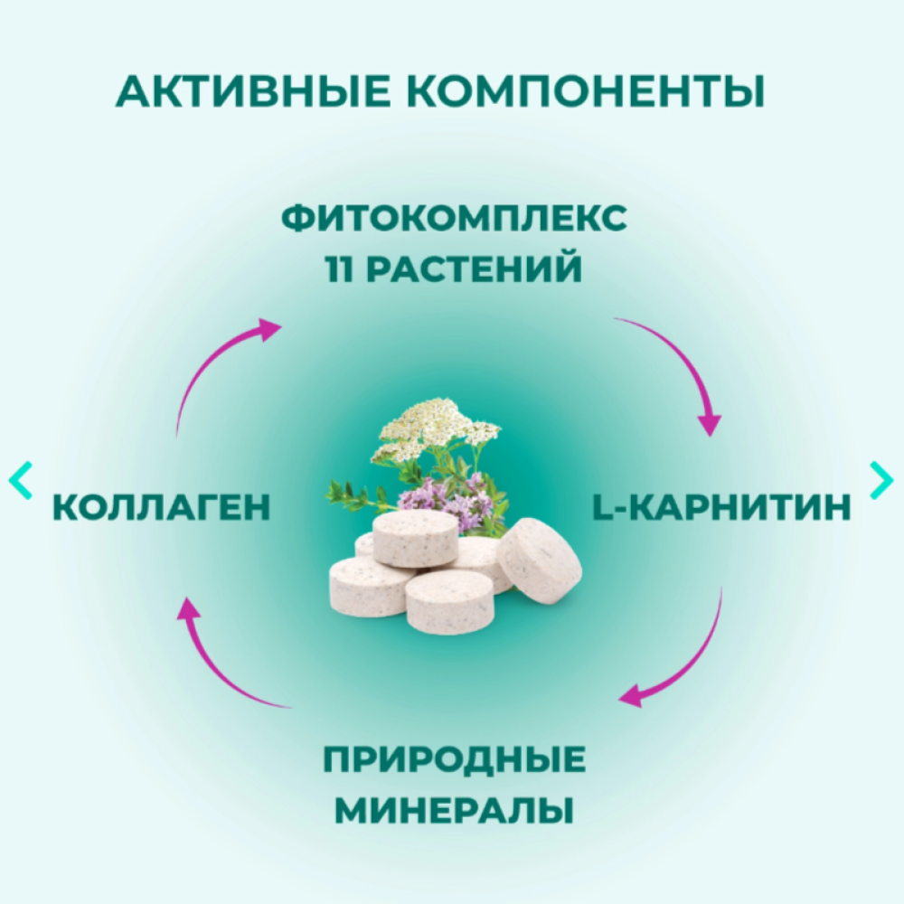Лактоза; фитокомплекс: лопуха корней, крапивы двудомной листьев, березы листьев, ромашки аптечной цветков, чабреца травы, аира обыкновенного корневищ, череды трехраздельной травы, солодки корней, подмаренника настоящего травы, подорожника большого листьев, тысячелистника обыкновенного травы; дрожжи пивные сухие кормовые; комплекс минеральный (кальция фосфат дефторированный); крахмал картофельный; кальция стеарат; поливинилпирролидон; L-карнитин; коллагена гидролизат; добавка пищевая вкусо-ароматическая «Бекон»; сера кормовая.