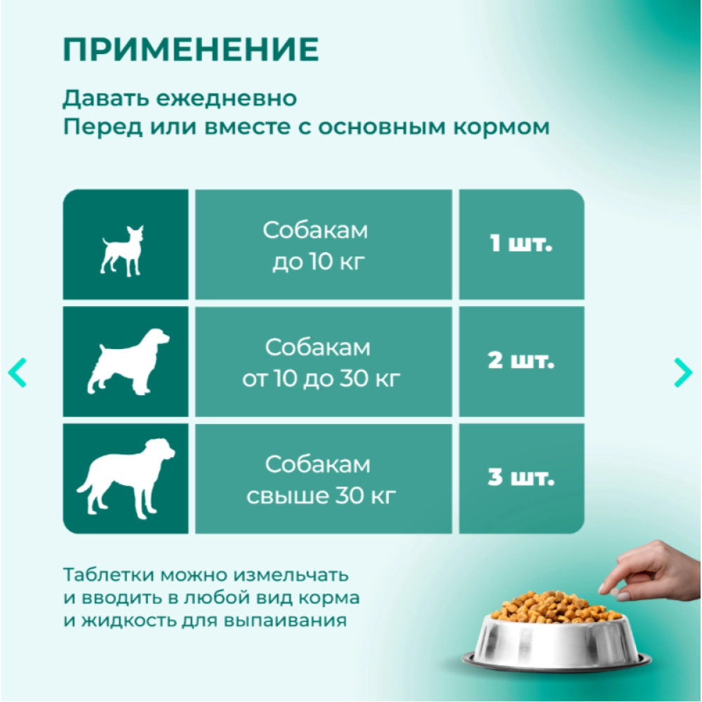 собакам крупных размеров (свыше 30 кг) по 1,5 г (3 шт.).