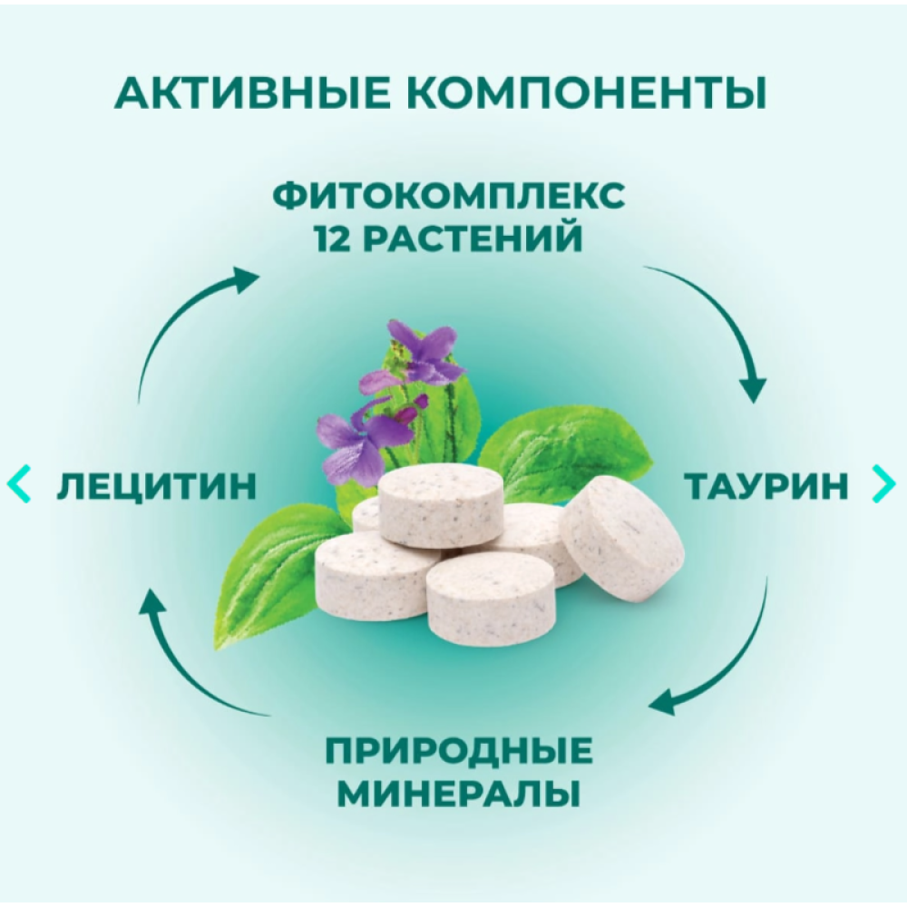 Лактоза, гидролизат белковый; фитокомплекс: золототысячника травы, солянки холмовой травы, фиалки травы, подорожника большого листьев, фенхеля обыкновенного плодов, чистотела большого травы, бессмертника песчаного цветков, одуванчика лекарственного корней, чаги, тысячелистника обыкновенного травы, таволги (лабазника) вязолистной цветов, солодки корней; дрожжи пивные сухие кормовые; комплекс минеральный (кальция фосфат дефторированный); мука рыбная; крахмал картофельный; кальция стеарат; поливинилпирролидон; L-карнитин; лецитин; таурин; сера молотая кормовая.