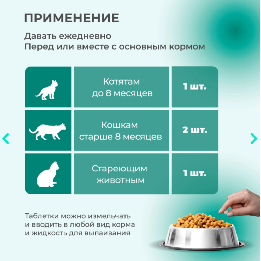 кошкам старше 8 месяцев — 1 г (2 шт.);