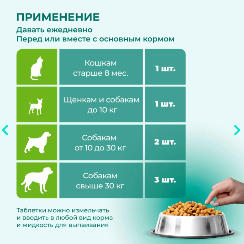 собакам крупных размеров (свыше 30 кг) по 1,5 г (3 шт.).