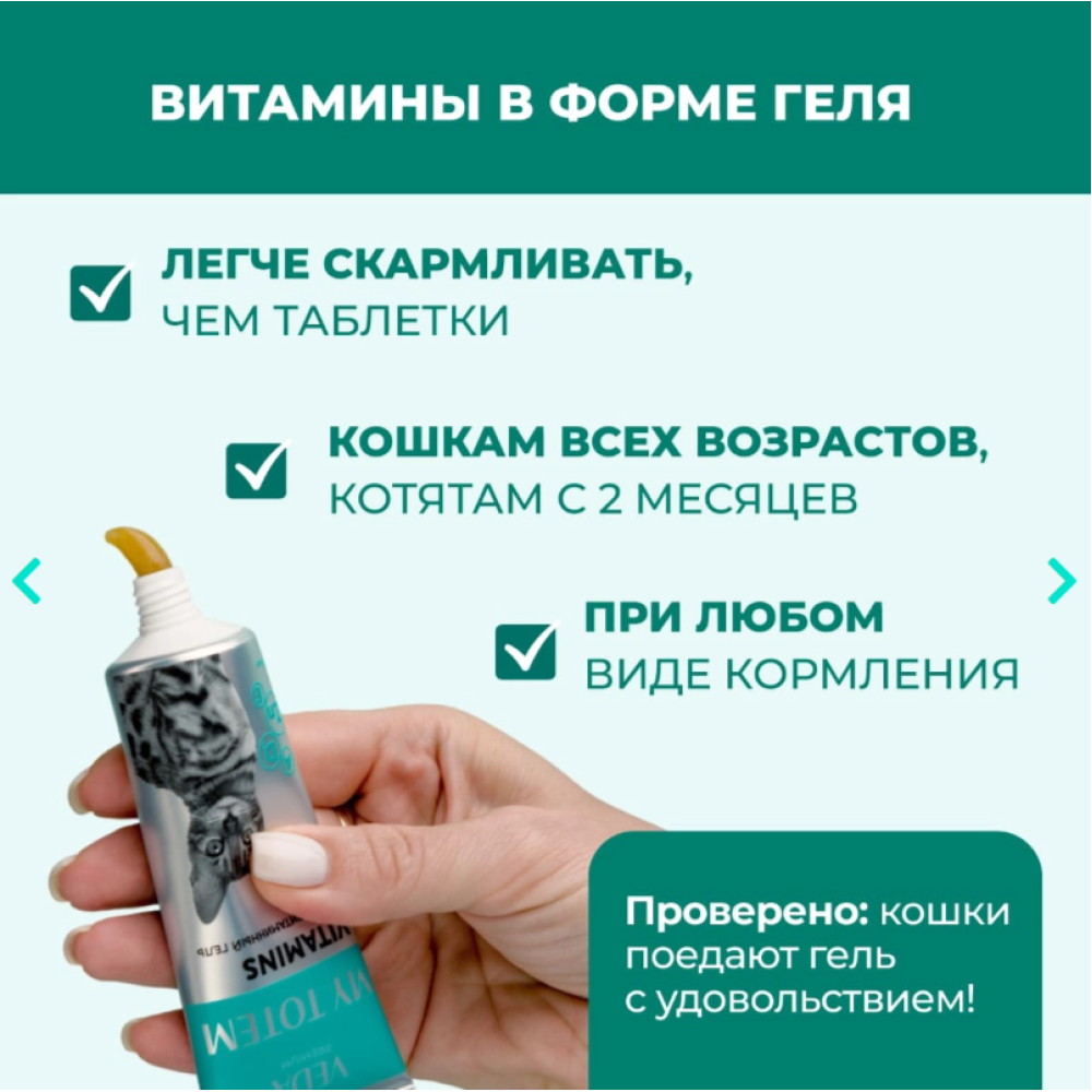 MY TOTEM VITAMINS мультивитаминный гель для кошек, котят предназначен для систематического употребления в составе кормовых рационов животных.