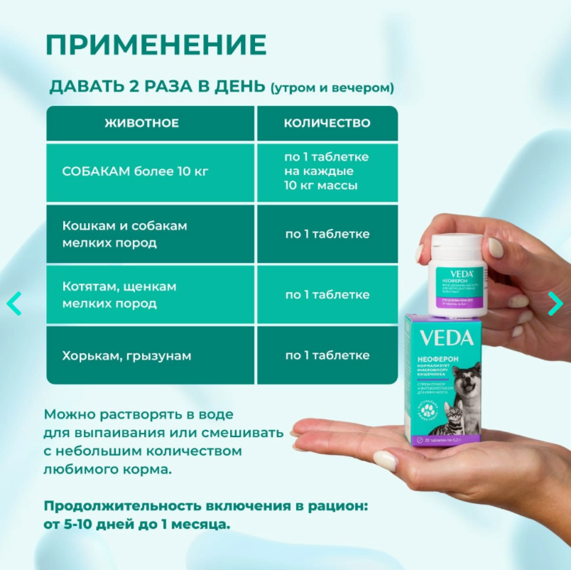 Для усиления эффекта рекомендуется применять НЕОФЕРОН в комплексе с пробиотическим функциональным кормом ЛАКТОБИФИД.