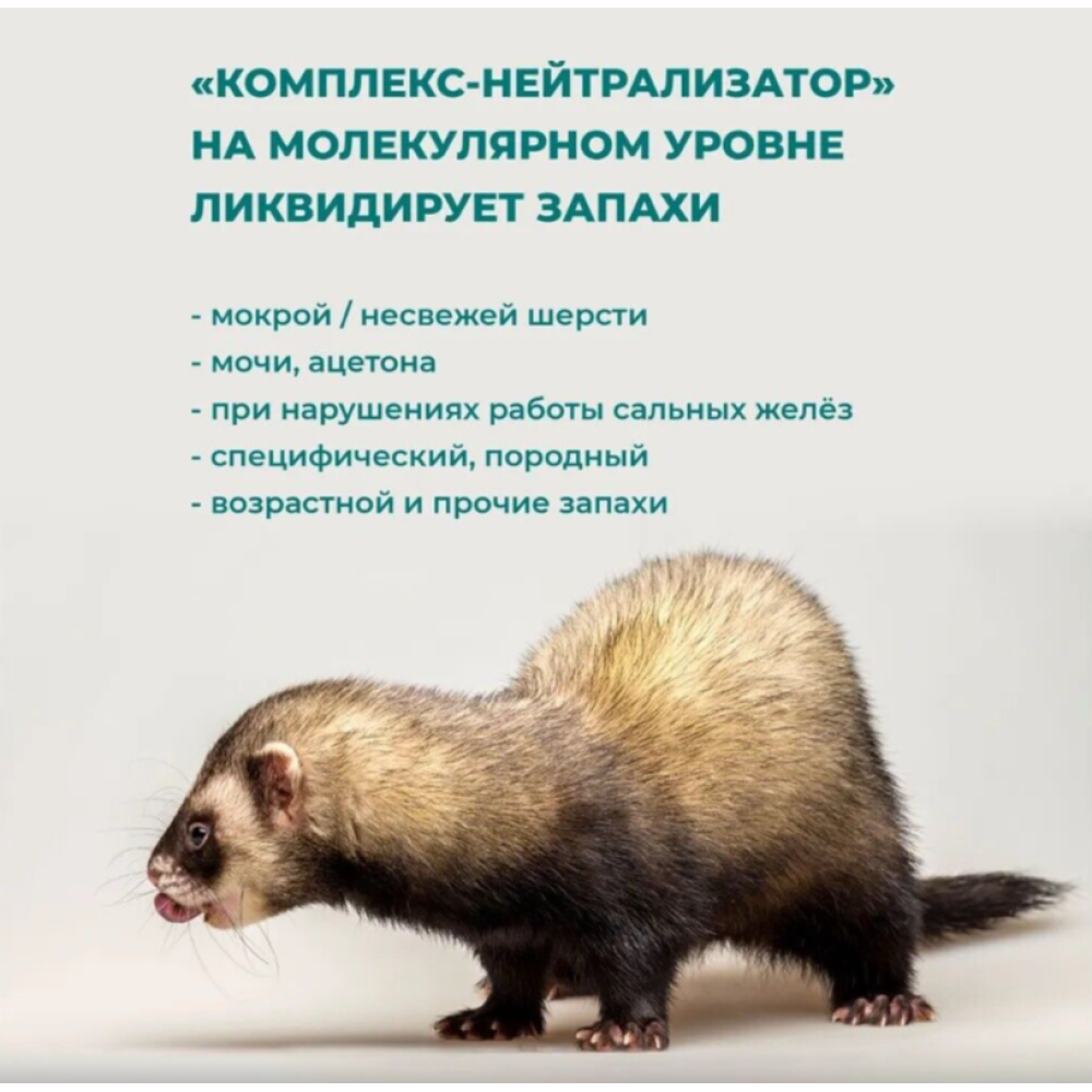 Предназначен для собак, кошек, хорьков и других мелких домашних животных, имеющих неприятный запах.