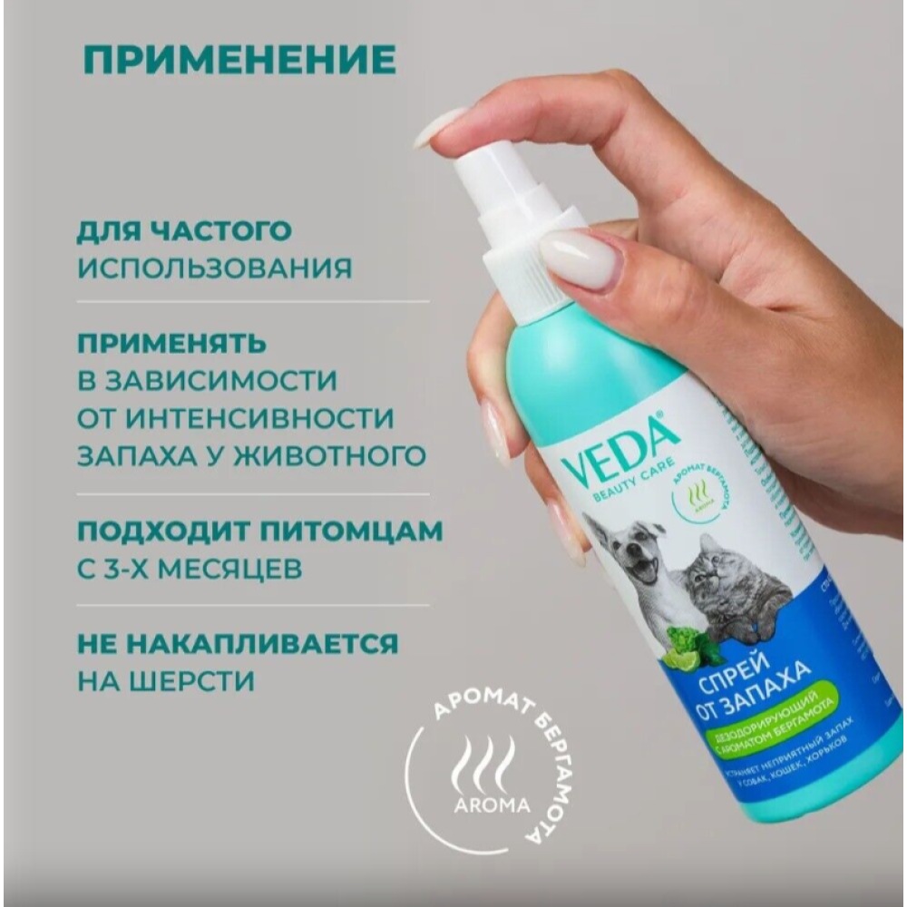 ДЕЗОДОРИРУЮЩИЙ спрей Бергамот эффективно устраняет неприятные запахи: мочи, мокрой или несвежей шерсти, при нарушении работы сальных желёз и т.п.