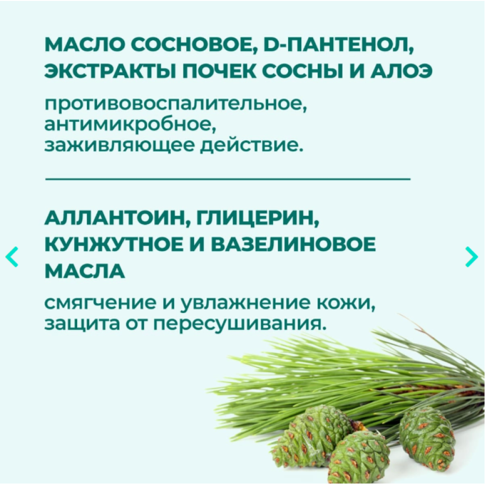 Эфирное масло сосны, D-пантенол, экстракт Алоэ и почек сосны, входящие в состав средства, содержат комплекс терпеноидов, которые обладают выраженными противовоспалительными, антимикробными, заживляющими свойствами.